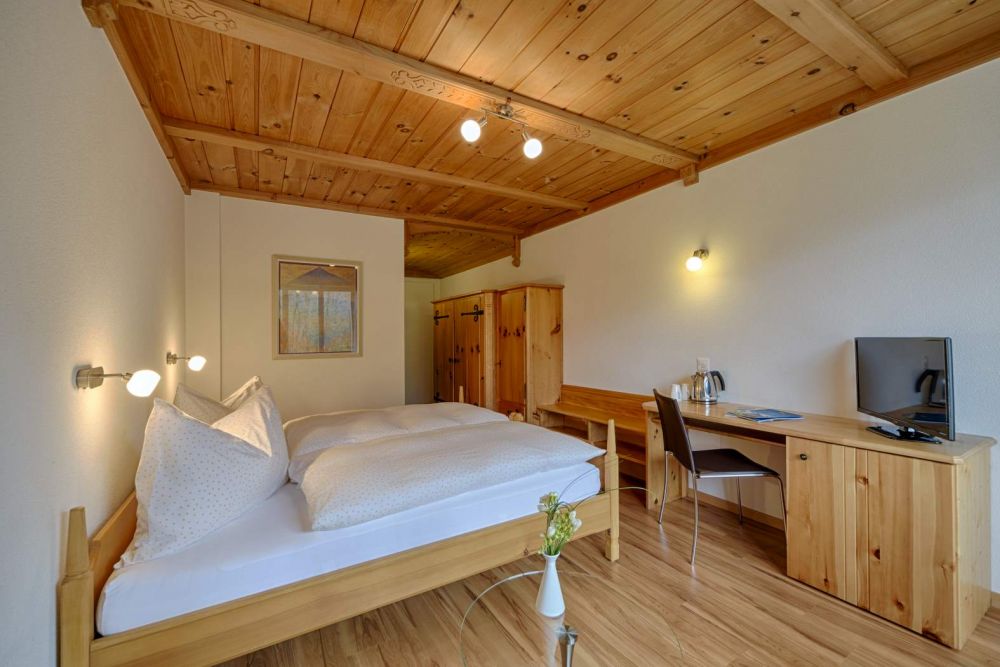 Unsere heimeligen Doppelzimmer »Superior« für 2 Personen befinden sich alle in der Résidence und bestechen durch Ihre ruhige Lage und den Balkon mit Blick in den Garten und seitlich zum Thunersee.
